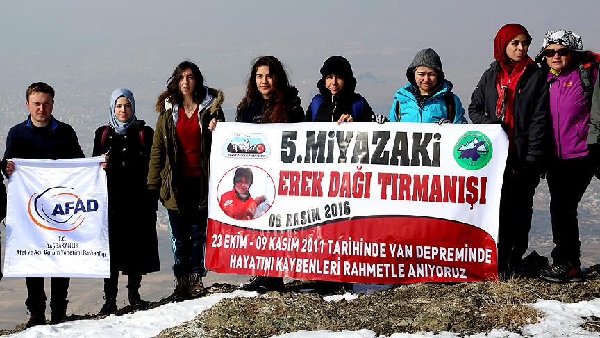 Bu amaçla geleneksel hale getirdikleri "Miyazaki Erek Dağı Tırmanışı"nın bu yıl beşincisini düzenleyen Vadi Doğa Spor Kulübü de 2 bin 800 rakımlı Küçük Erek Dağı'na tırmanış gerçekleştirdi.