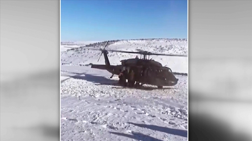 Bunun üzerine Valilik koordinesinde İl Jandarma Komutanlığından havalanan askeri helikopter, kar yağışı sebebiyle yolu kapanan köye iniş yaptı.