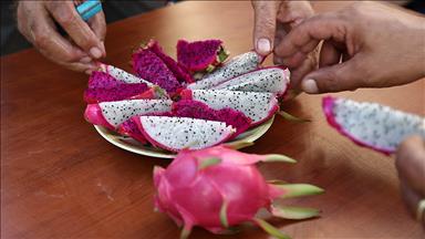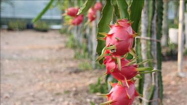 Antalya'nın Gazipaşa ilçesinde serasında "ejder meyvesi" olarak bilinen pitahaya yetiştiren üretici, hasadına başladığı ürünlerin tanesini 15 liradan satıyor.