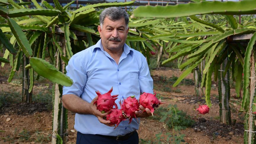 Beyrebucak Mahallesi'nde yaşayan Mahmut Yüksel, internette gördüğü pitahaya meyvesini araştırarak ekmeye karar verdi.