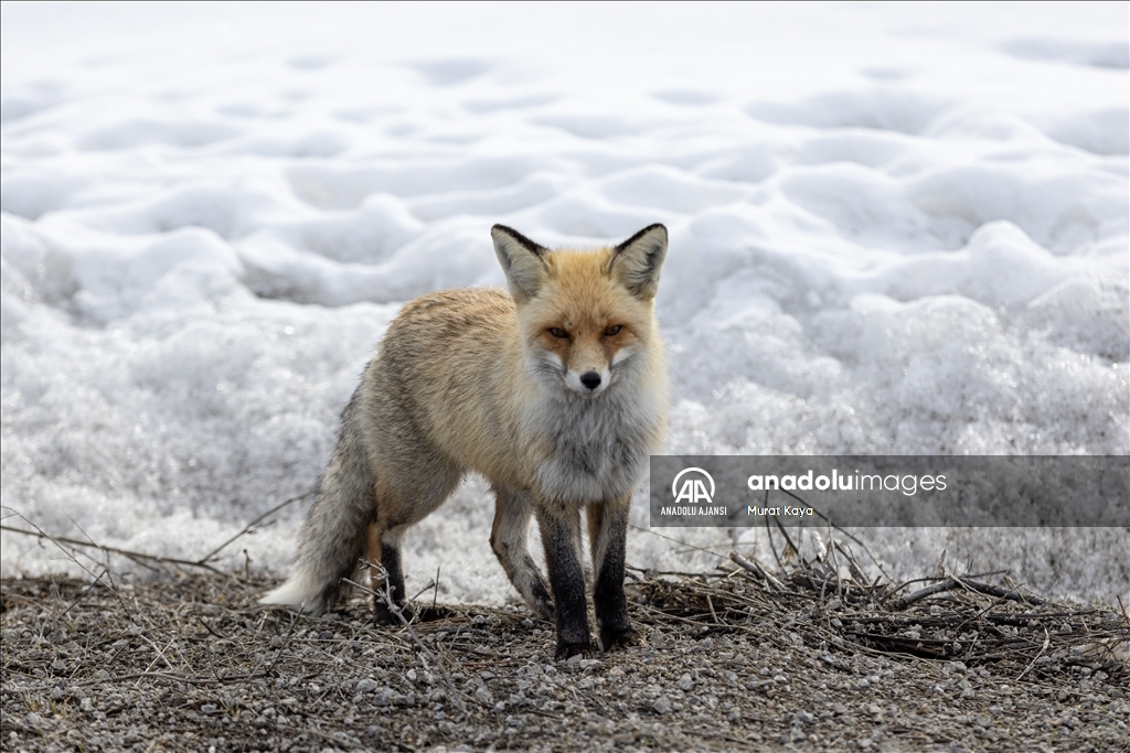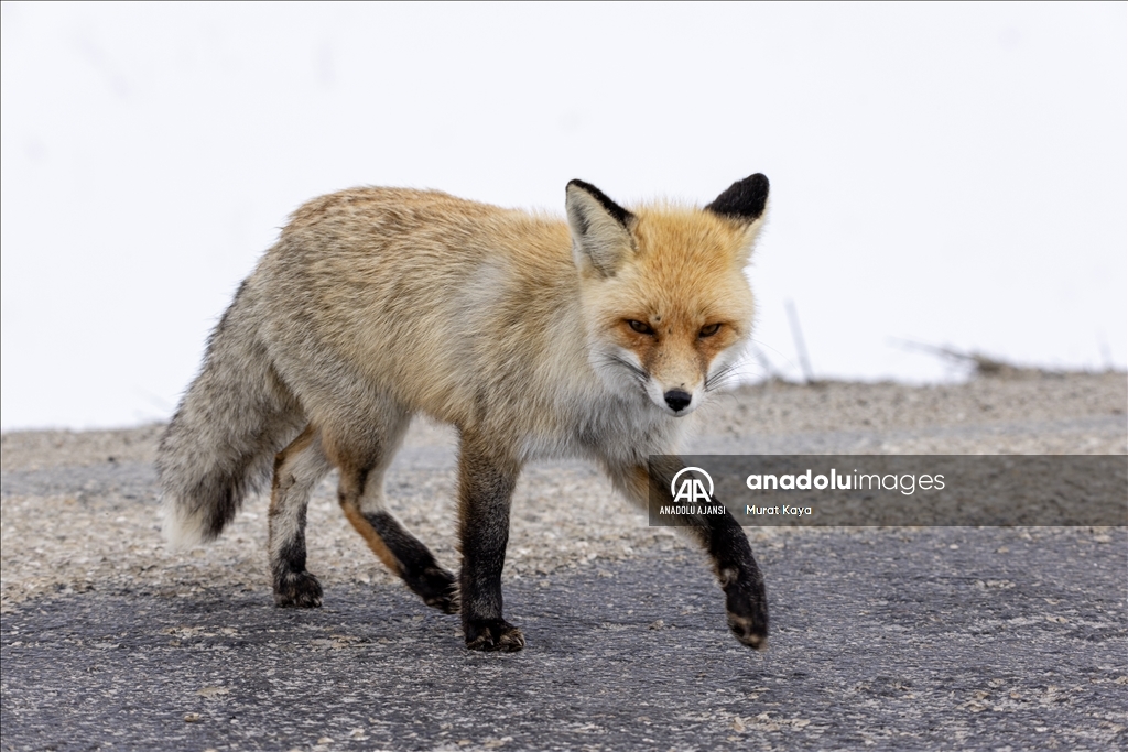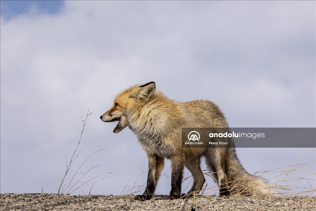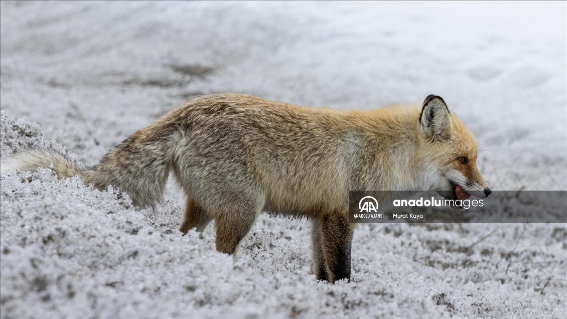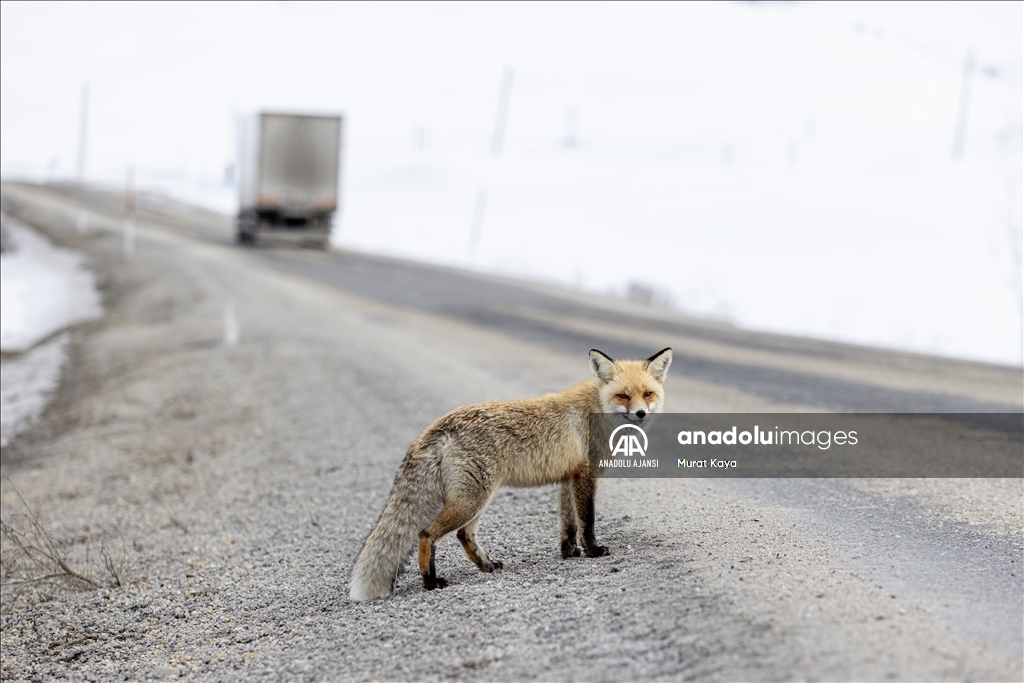 Erzurum'da aç kalan tilkiyi kraker ve sucukla beslediler
