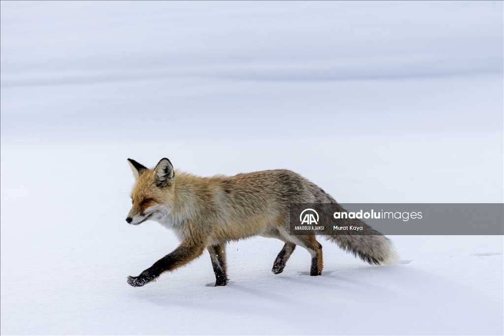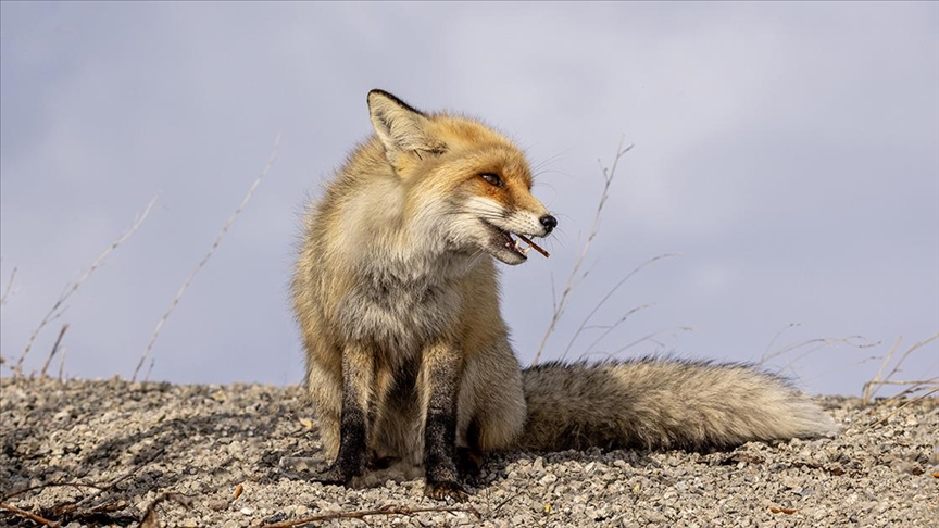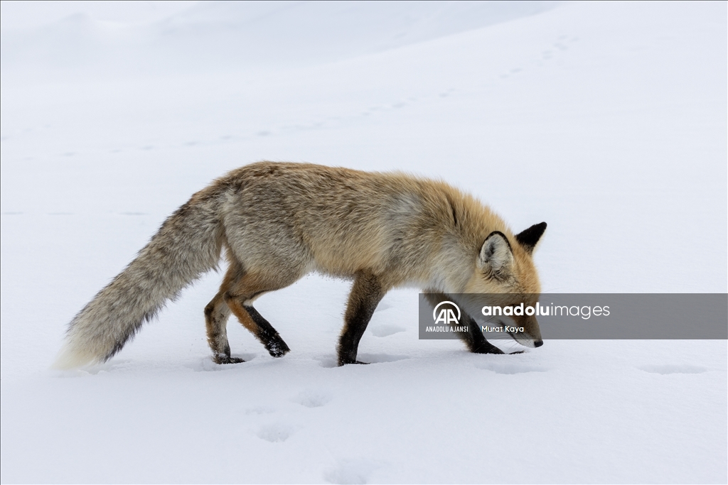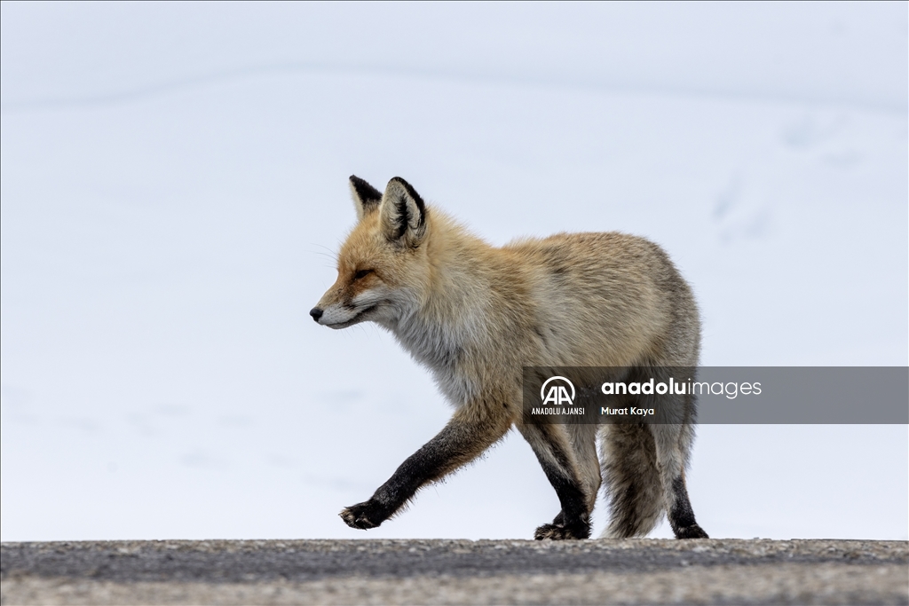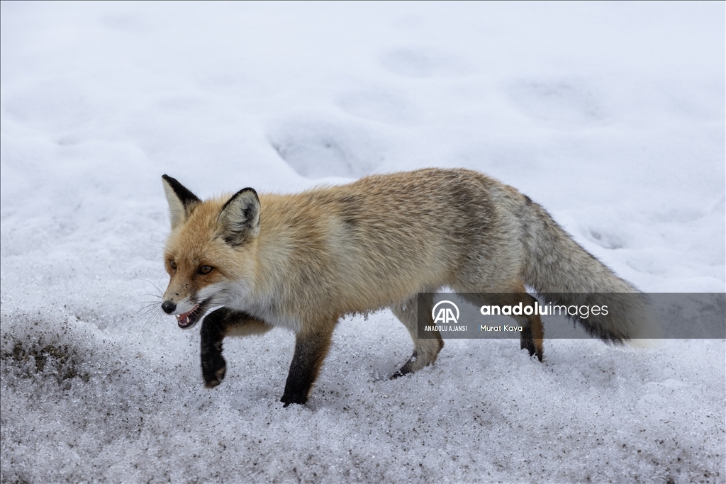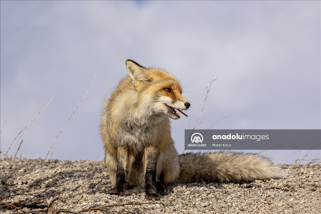 Erzurum'da aç kalan tilkiyi kraker ve sucukla beslediler