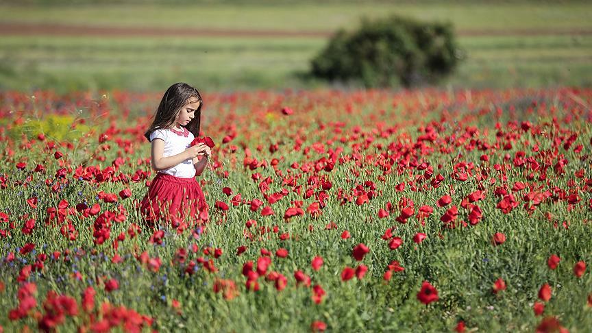 Türkiye'de ilkbahar mevsiminde çoğu bölgede doğal olarak yetişen, şiir, efsane ve türkülere konu olan gelincik çiçeği, kırmızı görüntüsüyle Van'daki uçsuz bucaksız tarlalarda görsel şölen oluşturuyor.
