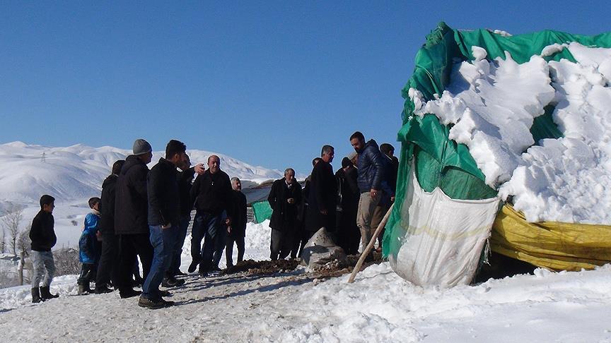 Aksoy, barakanın yoğun kar yağışı nedeniyle çöktüğünü belirterek "Sesi duyarak dışarı çıktığımda hayvanlarım için geçici olarak yaptığım brandalı barınağın çöktüğünü gördüm. Komşuların yardımıyla hayvanların çoğunu dışarı çıkarttık. Maalesef 20 koyunumuz telef oldu." dedi.