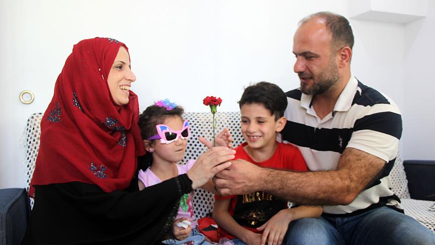 Hama'da Esed güçlerinin saldırıları nedeniyle zor günler geçiren ve geçim sıkıntısı yaşamaya başlayan 42 yaşındaki diş teknisyeni Enes Huleyf, 3 yıl sonra görebildiği eşi Nur Tarbuş ile 5 ve 7 yaşındaki iki çocuğuyla hasret gideriyor.