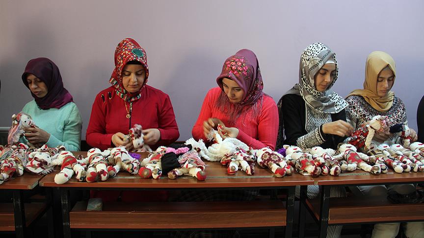 Kurs eğitmeni Dilek Yıldız, AA muhabirine yaptığı açıklamada, kadınların kendi el emekleriyle yaptıkları bebekleri Suriyeli çocuklara hediye edeceklerini söyledi.