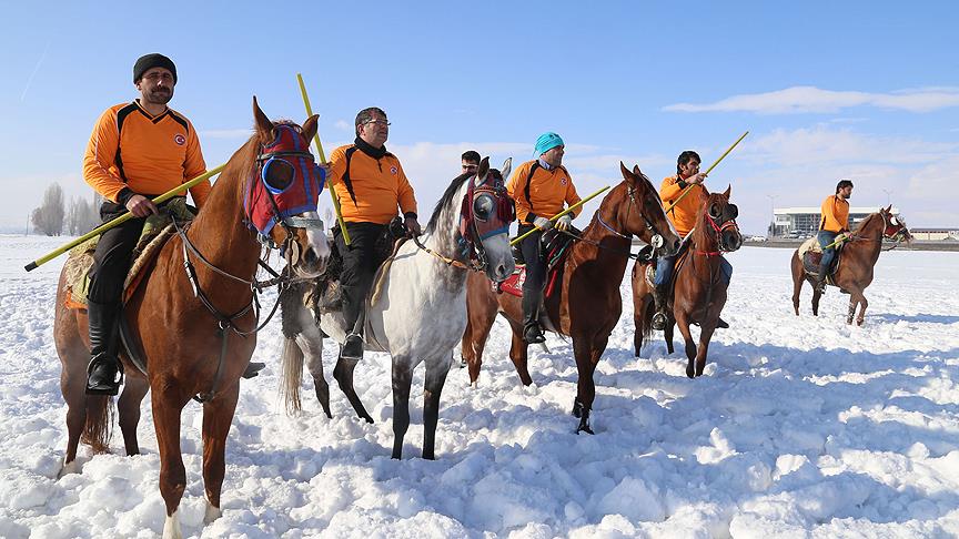 Kışın sıfırın altında 30 dereceye düşen hava sıcaklığına rağmen cirit oynamaktan vazgeçmeyen dadaşlar, atlarını dört nala sürüp adrenalin yaşarken, ata sporunu da geleceğe taşıyor.