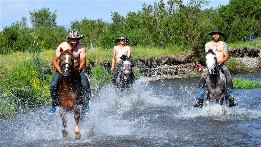 Tarım ve hayvancılığın yaygın yapıldığı Kars'ta bazı çiftçiler, sıcaktan bunalan atlarını derede serinletiyor.