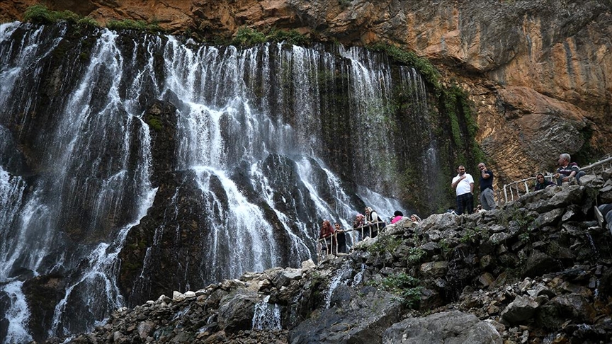 Kayseri'de sıcaktan bunalanlar şelalelerde serinliyor
