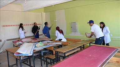 Artuklu ilçesi Tilkitepe Mahallesi'nde yaşayan kız çocukları, belediye personelinin desteğiyle tadilatını da yaptıkları okulu boyayarak, yeni eğitim öğretim dönemine hazır hale getirdi.