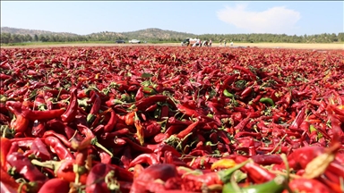 Türkiye'nin kırmızı pul biber üretiminin önemli kısmının yapıldığı Gaziantep'in İslahiye ilçesinde tarlalardan toplanarak işleme tesislerine getirilen kırmızı biberler, güneşin kavurucu sıcaklığı ve kadınların ellerinden geçtikten sonra yemeklere lezzet veren pul bibere dönüşüyor.