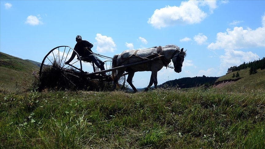Çiftçilerden Göktürk Öztürk, AA muhabirine, uzun kış mevsiminin ardından 2 bin 200 rakımda ot biçimine başlandığını söyledi.