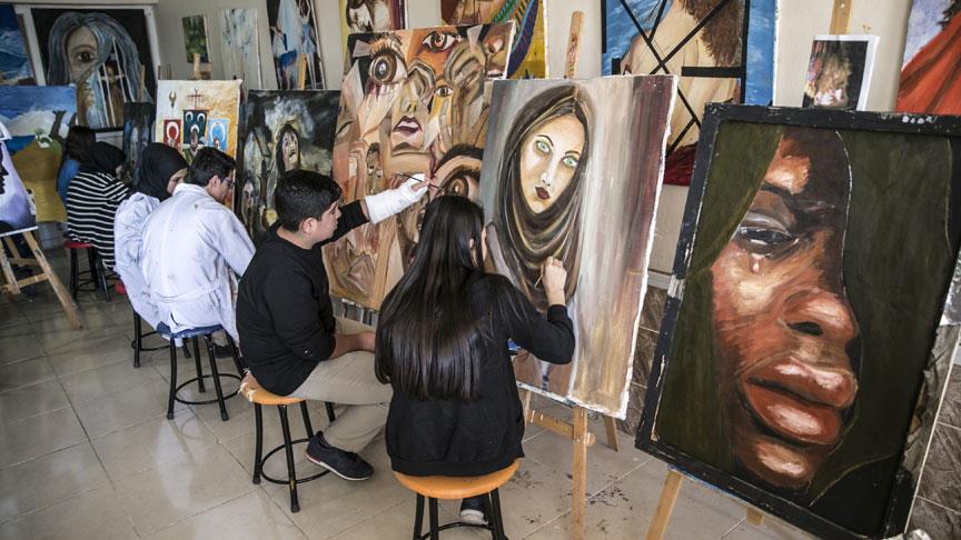 Okulun resim kulübündeki 30 öğrenci, 4 aylık zaman diliminde "Savaşın çığlığı", "Savaşın gerçek yüzü", "Savaşın gözyaşları", "Savaşsız bir dünya", "Suriyeli kadınlar", "Umut ve tutsak" konularını ele aldıkları yağlı boya resimler çizdi.