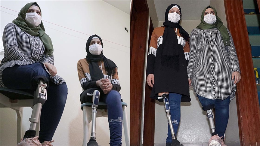 Suriyeli kız kardeşlerin protez bacak mutluluğu