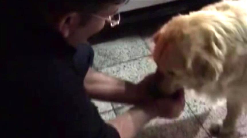 Polisin köpeğe avucuyla su verme anı, çalışma arkadaşları tarafından cep telefonu kamerasıyla kaydedildi.