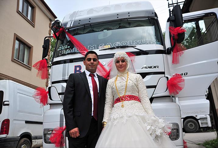 Dorsesi çıkarılıp renkli şeritler ve çiçeklerle süslenen tırın direksiyonuna geçen tır şoförü damat Anıl Çelik, kendisine eşlik eden arkadaşlarının kullandığı diğer iki tırla, konvoy halinde ilçenin cadde ve sokaklarından geçti. Bu arada, gelin Bahar Ercan ile düğün salonuna doğru giden Çelik ile konvoydaki iki tır, ağır vasıtaların geçişinin yasak olduğu Atatürk Bulvarı'na da girince, konvoydaki 3 tırın plakasına trafik ekiplerince ceza kesildi.