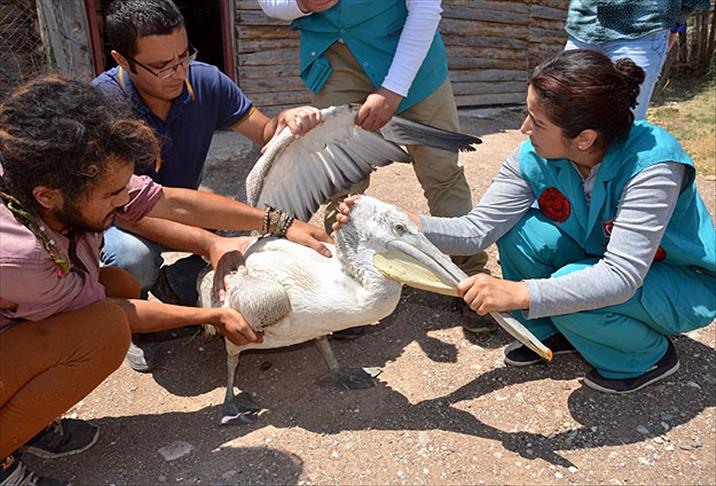 Denizli'de yaralı halde bulunan pelikan, Burdur'da rehabilitasyon merkezindeki tedavisinin ardından doğaya salınacak.