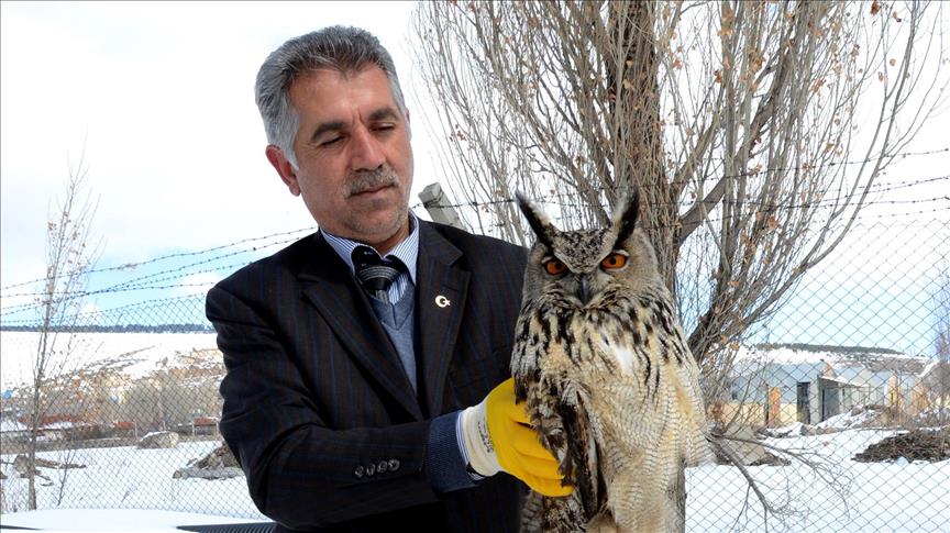 Sarıkamış Orman İşletme personeli tarafından yaralı halde bulunan puhu kuşu, tedavi altına alındı.